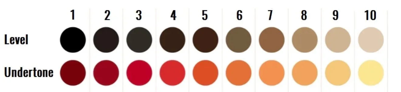 The chart above is what a stylist uses to determine your color level. The darkest color being 1 with the lightest at 10. The warm tones underneath are the underlying tones that make up that level of color. If your current color is at a 3 and you want to be a level 10, your have to go through all the stages of the colors in between. This is why it isn’t as simple as slapping on some bleach and calling it a day. Especially if your goal isn’t a dark orange-red.